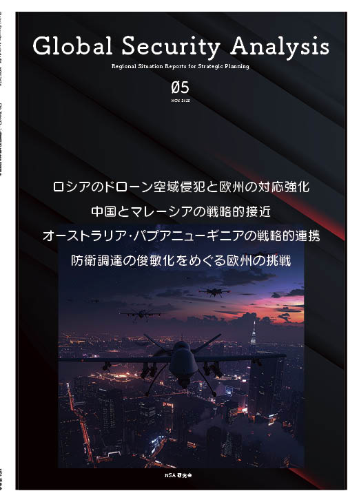 Global Security Analysis 05 (Nov.2025)By 担当者 / 2025-10-29 no.05cover 国際安全保障の分析レポート「Global Security Analysis 05 」 (Nov.2025) 著者: 久保田ようじ (NSA研究会 主宰) ■主な内容 ロシアのドローン空域侵犯と欧州の対応強化 / 中国とマレーシアの戦略的接近 / オーストラリア・パプアニューギニアの戦略的連携 / 防衛調達の俊敏化をめぐる欧州の挑戦 / 【ISBN978-4-911366-19-6】
